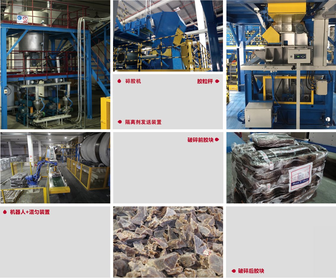 本系統(tǒng)用于將生產(chǎn)所用的標(biāo)準(zhǔn)膠塊進(jìn)行破碎、混勻,從源頭保證原材料物性的均一,從而保證最終產(chǎn)品質(zhì)量的穩(wěn)定。