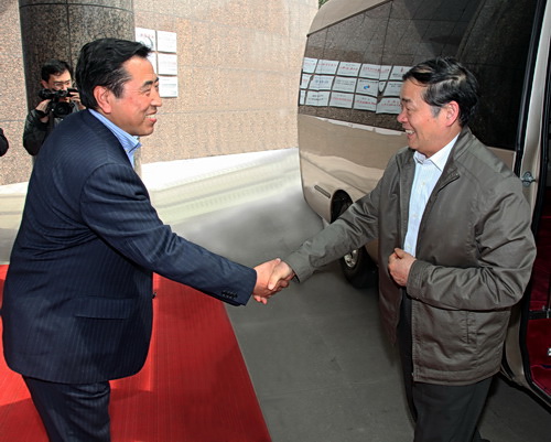 4月28日,國家工業和信息化部黨組成員、副部長楊學山一行在青島市委常委、副市長牛俊憲,四方區委書記紀敏,四方區區長張杰等相關領導的陪同下,到國家輪胎工藝與控制工程技術研究中心(簡稱“中心”)參觀考察。中心主任、公司董事長袁仲雪,中心副主任、副董事長張焱等領導熱情接待了楊學山一行。