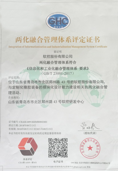經(jīng)過(guò)貫標(biāo)評(píng)定專家組的第一、二階段評(píng)估審核,及國(guó)家工信部?jī)苫诤瞎芾眢w系評(píng)定工作委員會(huì)的復(fù)核和公示等環(huán)節(jié),軟控最終通過(guò)了國(guó)家工信部?jī)苫诤瞎芾眢w系評(píng)定并獲得證書(shū)。